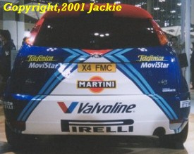 だって、触れる場所に置いてあるレース車両ってフォーカスWRCぐらいしかなかったんだもん。インプレッチャ(とJackieは呼ぶ)はサクの向こうで、しかも人だかり。2台のうち少なくても1台は市販車にカラーリングしただけだったし、これなら「WRRC」(WRCレプリカー・クラブ)の方がぜんぜんいいよぉ(T_T)。他のF−1マシンもすべてサクの中。これは仕方ないけどね。ジャガーもBMWもフェラーリもBARやジョーダンホンダ、新型のトヨタ(これはテストカーでした。ある意味貴重(^^;)まで、ぜーんぶサクの向こう。