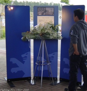 北愛国サービスパーク内のプジョー・ブース脇に、マイケルの死を悼み、その人柄と功績を称えるボードと献花が置かれていました。上の写真は、それを写したものです。訪れる人が後を絶たず、写真もこのような状態での紹介となりましたこと、ご容赦ください。