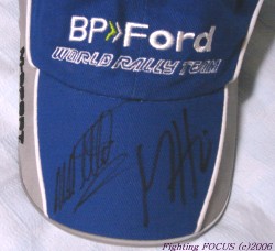 今回は、お宝を仕入れることができました。それが、左のキャップです。サインが2つ、あると思います。左側がマルコム・ウィルソン、右側がミッコ・ヒルボネンに、それぞれサインしてもらったものです。